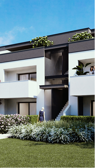 Le unità al piano terra disporranno di scoperto privato con giardino, mentre gli appartamenti ai piani superiori saranno dotati di ampie terrazze, ideali per vivere momenti all’aperto.